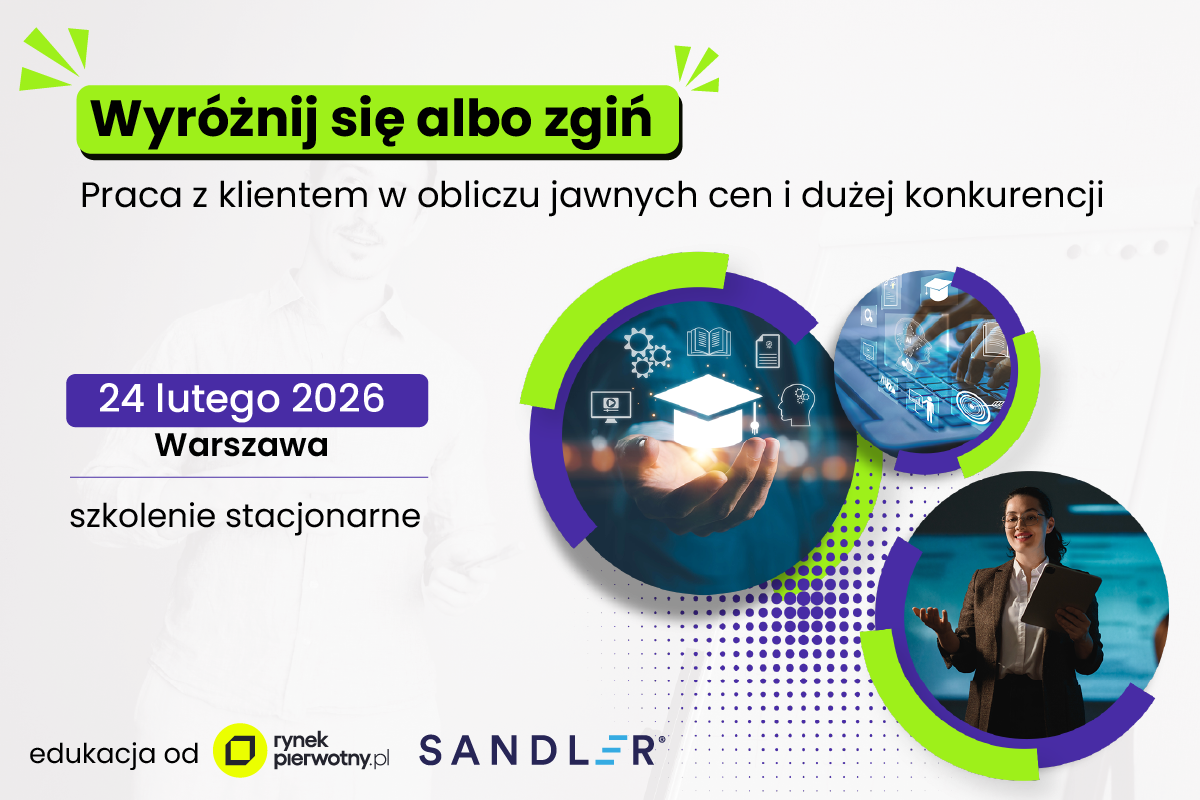 Akademia Real Estate, we współpracy z Sandler Training Polska, zaprasza na stacjonarne szkolenie sprzedażowe dla deweloperów, które odbędzie się już 23 lutego 2026 roku w Warszawie.